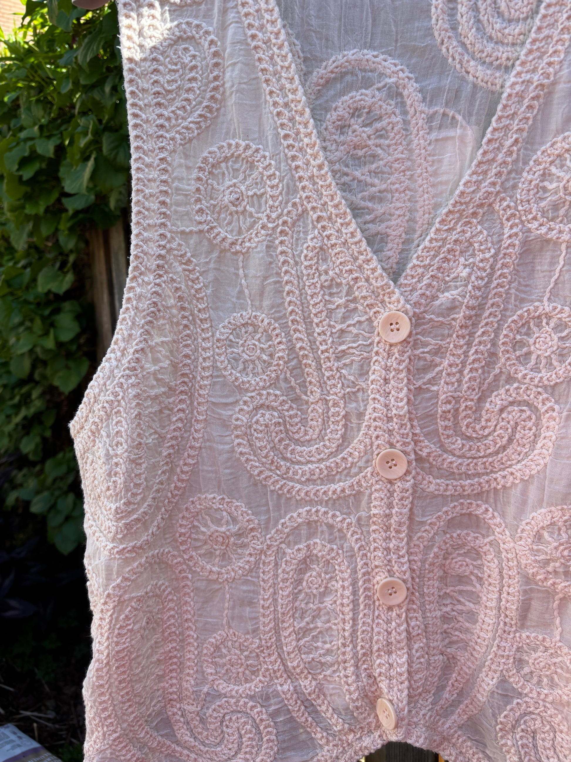 Mooi ecru kleurig giletje…prachtig geborduurd.